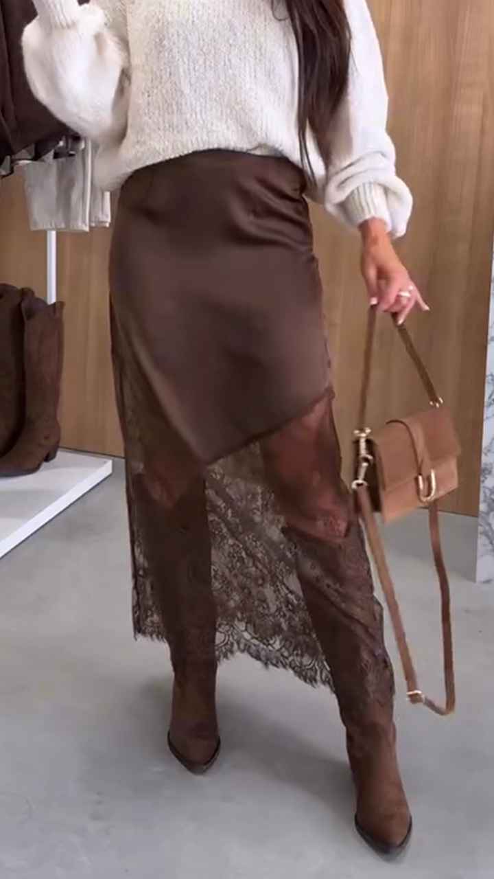 Women Patchwork Printed Hollow Casual Skirt